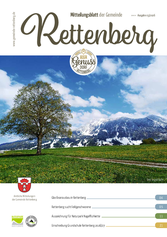 - Gartenbauverein Rettenberg: Die Jahreshauptversammlung mit dem spannenden Vortrag „Lichtverschmutzung im Garten“ findet am 30. März statt. Der traditionelle Verkauf von hochwertiger Blumenerde am Wertstoffhof beginnt am 21. März.